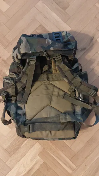 Mochila de estilo bushcraft, ideal para actividades al aire libre. - Diseño robusto y funcional. - Múltiples compartimentos y bolsillos. - Correas ajustables para mayor comodidad. Molle (sistema decathlon). 30 litros + bolsillos