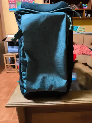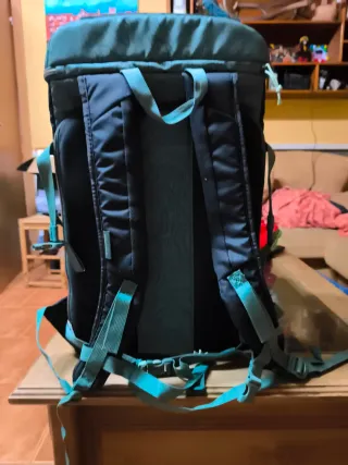 Mochila nevera de la marca Quechua con una capacidad de 30 litros. Ideal para mantener tus bebidas y alimentos frescos. - Color azul verdoso. - Cierre de cremallera superior. - Bolsillo frontal con cremallera. Incluye bolsa impermeable Decathlon Y 4 acumuladores de frío. Todo en perfecto estado