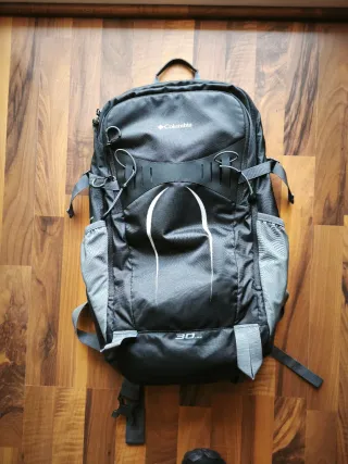 Mochila Columbia en excelente estado, prácticamente sin usar. Ideal para tus aventuras. - Capacidad de 30 litros. - Diseño moderno en negro y gris. - Compartimentos exteriores para botellas.