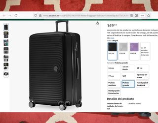 El articulo es original, y se han comprado en la tienda de la marca o distribuidor autorizado y esta sin usar Color Gris oscuro Precio Amazon 149 euros. GRAN MALETA DE VIAJE: Con sus dimensiones de 77 x 50 x 30 cm, la maleta es el compañero perfecto para vacaciones en familia y viajes extensos alrededor del mundo. ESPACIO EXTRA: La expansión reforzada de la maleta de 8 cm permite que la maleta se expanda a 77 x 50 x 38 cm/max. 130 litros.