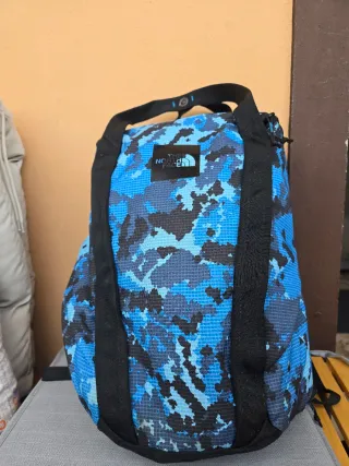 Mochila The North Face con un diseño llamativo en camuflaje azul y negro. Ideal para tus aventuras. - Capacidad de 30 litros. - Ha sido utilizada solo dos veces, prácticamente nueva.