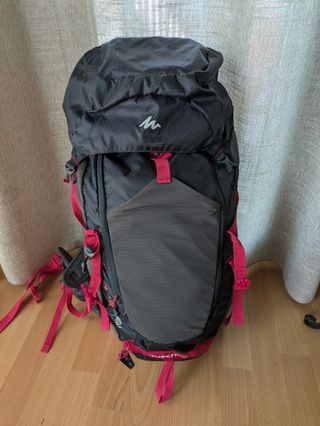 Usada una vez. Mochila de senderismo Quechua con una capacidad de 30 litros. - Compartimento principal espacioso. - Bolsillos exteriores para acceso rápido. - Correas de hombro acolchadas y ajustables. - Panel trasero transpirable.