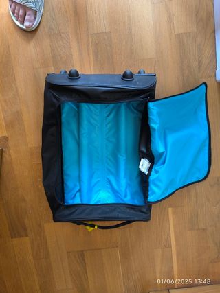 Maleta de cabina Kipsta de 30 litros, color negro. Está en muy buen estado. - Capacidad: 30 litros. - Asa de transporte superior. - Ruedas para facilitar el desplazamiento.