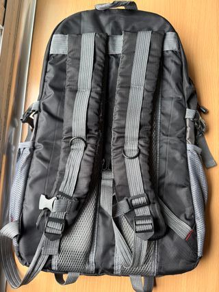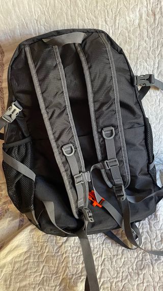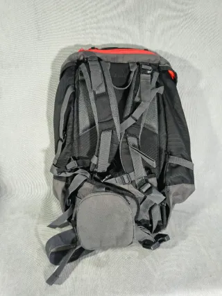 Mochila de senderismo de 40 litros, sin usar. Perfecta para tus aventuras al aire libre. - Diseño en color negro y gris. - Compartimento principal espacioso. - Bolsillos laterales de malla. - Correas ajustables para mayor comodidad.