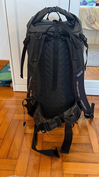 Mochila Patagonia Descensionist de 40 litros. Mochila de 40L de esquí de montaña. Porta esquís laterales. Porta piolet. También se puede llevar el piolet dentro del bolsillo frontal. Conpartimento frontal para Pala y Sonda (También piolets de 50cm.) Bolsillo interior porta documentos. Bolsillos pequeños en los cinturones lumbares. Cierre superior enrollable. Estanco. Mochila muy resistente a la intemperie (lluvia y nieve).