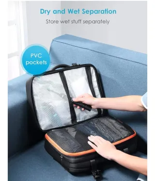 marca: DEVAJE modelo: LIFESTOWAY color: Negro estado: Nueva, sin uso características: - Mochila de viaje con diseño expandible - Múltiples compartimentos y bolsillos organizadores - Puerto USB integrado para carga externa (requiere powerbank) - Espalda acolchada y correas ergonómicas ajustables - Sistema de sujeción con correas laterales y frontales - Bolsillo trasero con cremallera oculta - Asa lateral para llevar como maletín - Cremalleras resistentes y costuras reforzadas dimensiones_aproximadas: alto: 45 cm ancho: 30 cm fondo: 15-25 cm (expandible) capacidad: 30-40 litros aprox. ideal_para: - Viajes