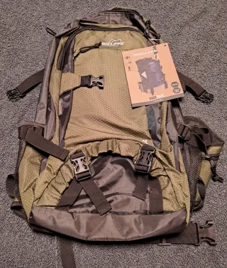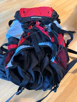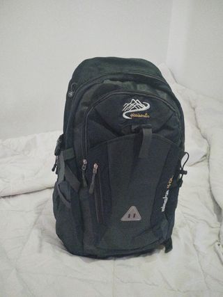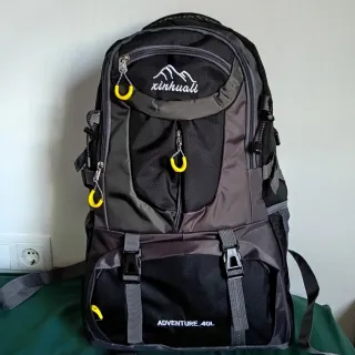 Mochila de senderismo Alaska con una capacidad de 40 litros. Diseñada para ser práctica y cómoda. - Compartimento principal espacioso. - 3 bolsillos cerrados con cremallera y uno abierto + 2 Bolsillos laterales de malla. - Correas de hombro ajustables. Nueva a estreno