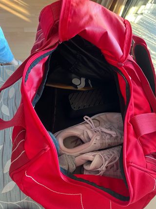 Mochila deportiva Kipsta de gran capacidad, ideal para llevar todo tu equipamiento. - Capacidad de 40 litros. - Diseño en color rojo. - Cierre de cremallera. en buen estado