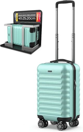 Maleta de cabina con ruedas, perfecta para viajar sin pagar equipaje extra. Cumple exactamente con las medidas de Ryanair (40x20x25 cm) y también con el nuevo límite gratuito de EasyJet. Ligera (1,4 kg), con capacidad de 18,2 litros, ideal para escapadas rápidas. Aceptada en la mayoría de aerolíneas europeas como Lufthansa, Norwegian, Jet2, KLM, British Airways o Virgin Atlantic. Lista para tu próximo viaje. * pequeña rotura en un lateral, adjunto fotografía, por lo demás esta nueva sin uso