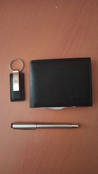 Lote cartera, llavero y bolígrafo. Skyline