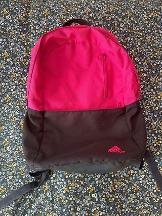 Mochila de la marca Adidas con un diseño bicolor. - Compartimento principal espacioso. - Bolsillo frontal con cremallera. - Correas ajustables para los hombros.