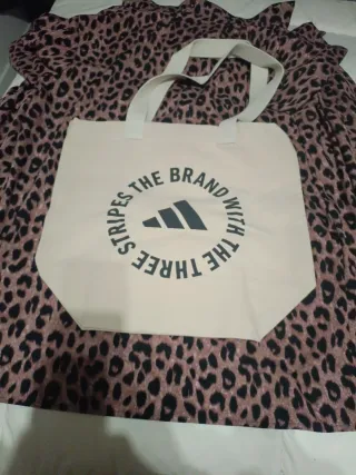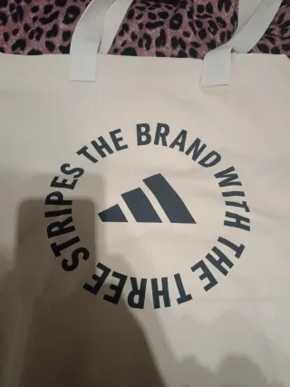 Práctica bolsa de tela de algodón beige Altura 45 cm ancho 46 cm - Diseño con el logo de Adidas. nueva a estrenar - Asas resistentes para llevarla cómodamente.