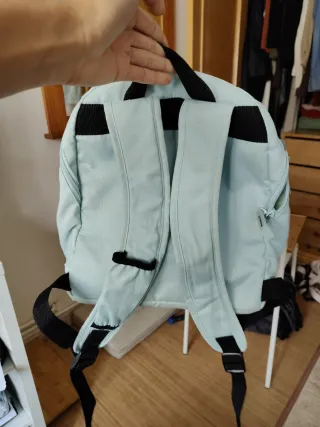 Mochila de la marca Adidas en color verde azulado. - Diseño moderno y funcional. - Compartimento principal con cierre de cremallera. - Bolsillo frontal con cremallera. Bien cuidada y limpia.
