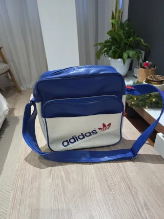 Bandolera de la marca Adidas con un diseño moderno. - Diseño de rayas verticales. - Correa ajustable para mayor comodida - Correo y cremallera perfectas - Foto de desperfecto