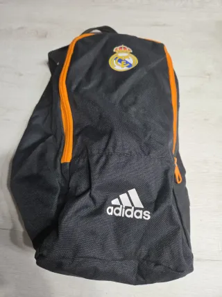 Mochila escolar o deportiva del Real Madrid. - Diseño con los colores azul y blanco. - Logo del Real Madrid y tres franjas de Adidas. - Compartimento principal con cremallera.