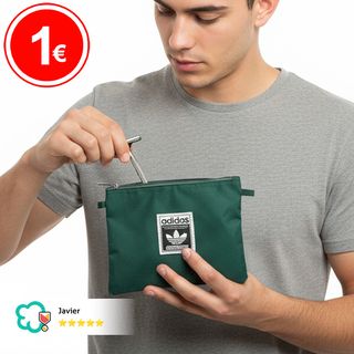 Bolsa de tela Adidas topo neceser con cierre de cremallera. Mide 20 cm de ancho x 15 cm de alto. Sirve prácticamente para llaver cualquier cosa. ¡Por la mitad de lo que cuesta un café!