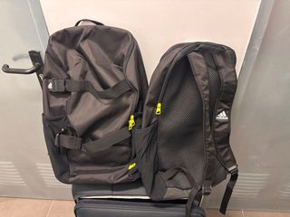 Mochila de viaje de la marca Adidas, en color negro. - 2 unidades - Compartimentos exteriores. - Cremalleras de color llamativo. - Correas ajustables. - 26 litros de capacidad