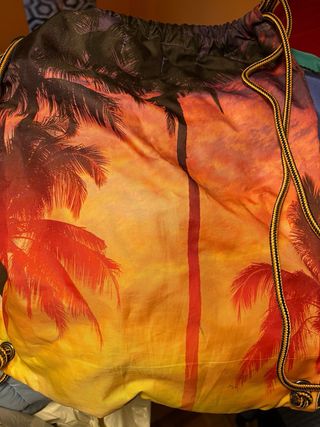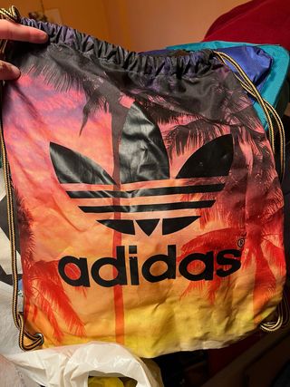 Mochila con cordones de Adidas con un diseño vibrante de palmeras y atardecer, usada pero en buen estado, también tengo la gorra a juego a la venta en mi perfil. - Estampado de palmeras y cielo al atardecer. - Cierre de cordón. - Logo de Adidas. No leer: sony, nintendo, playstation, xbox, zelda, mario, poquemon, reloj, monedas, sellos, filatelia, numismatica, correos, documentos antiguos, papel sellado, cartas, videojuegos, retro, coleccionismo, pvc, vinilos, omega, cartier, tag heuer.
