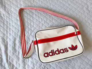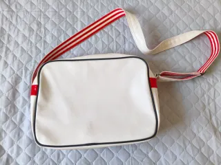 Se vende bolso bandolera marca original Adidas. Es de color blanco con detalles multicolor. - Incluye una correa ajustable. - Está en buenas condiciones, aunque presenta algunas pequeñas manchas.