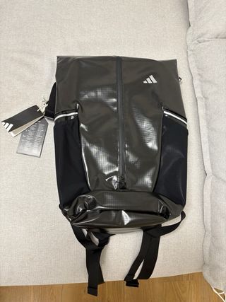 Mochila Adidas en color negro con el logo clásico de la marca. - Diseño moderno y funcional. - Correas ajustables para mayor comodidad. - Compartimento principal espacioso. - Bolsillo frontal con cremallera. - En perfecto estado