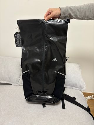 Mochila Adidas en bien estado. Tiene dos compartimentos, el princiapl y un bolsillo delantero pequeño. Medidas en cm:: largo 40, ancho 35, profundidad 13