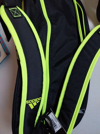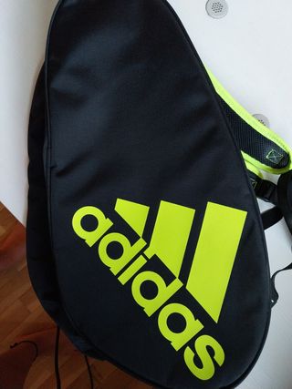 Vendo bolsa Adidas para raqueta en perfecto estado. Es negra con detalles amarillos. - Ideal para transportar una raqueta. - Diseño deportivo y elegante. - Asa para llevarla cómodamente.
