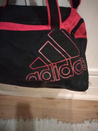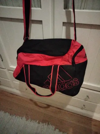 Práctica bolsa de deporte de la marca Adidas, como n varios compartimentos y bolsillos para llevar todo lo que necesites. Sólo se ha usado 2 veces. Es ideal para llevar tu equipación. - Color rosa y negro. - Diseño deportivo. - Correa ajustable para llevar al hombro.