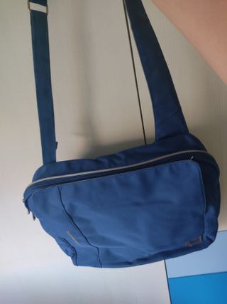 Mochila bandolera grande ideal para transportar carpetas y libros. De la marca Adolfo Domínguez y con muy poco uso, presenta varios compartimentos y bolsillos.