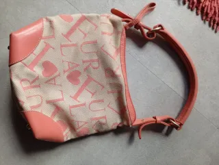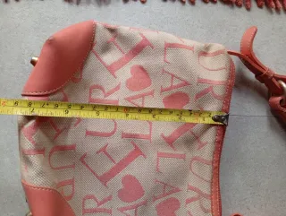 Bolso de mano con un diseño llamativo y elegante. - Estampado de letras y corazones. - Detalles en piel. - Asa cómoda para llevar al hombro,uso fotos manchas necesita limpieza de ahí precio, REGALO bolso Adolfo Domínguez foto ,