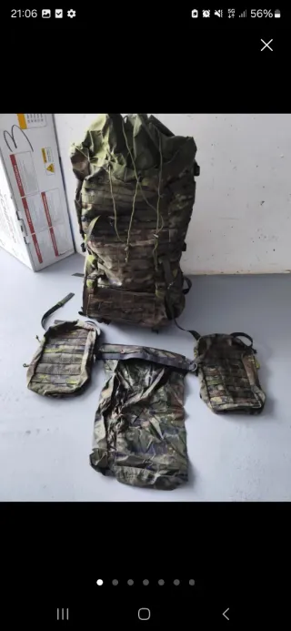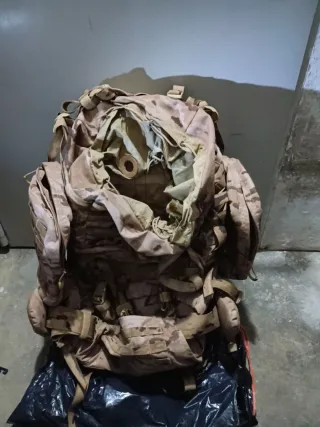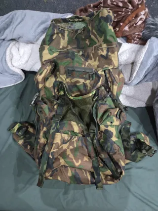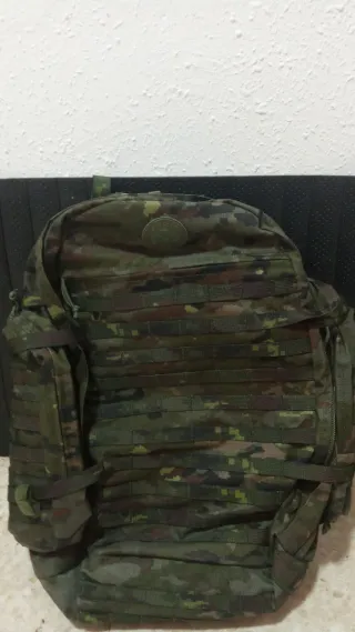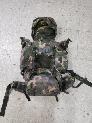 Mochila de 100L sin estrenar , en su bolsa original , espaciosa y cómoda . -Diseño camuflaje boscoso. - Tejido ripstop antidesgarro. -Ajuste lumbar y espaldas. -Cubre mochila impermeable integrado . -Acceso inferior a saco impermeable . -Cierre pectoral y de cintura . -Bolsillo exterior y otro interior "seta" . -3 bolsillos exteriores. - Correas ajustables .