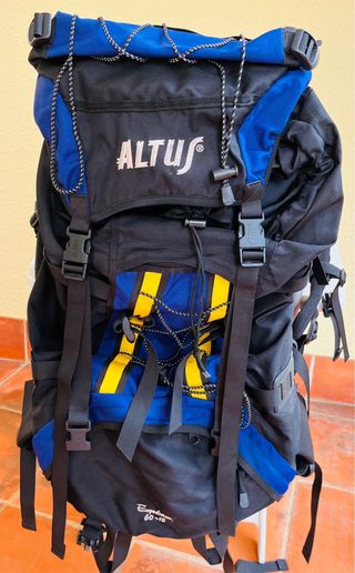 Mítica Mochila de senderismo de la marca Altus, 65 litros de capacidad, ideal para el Camino de Santiago. - Diseño espacioso para tus aventuras. - Tirantes ajustables para mayor comodidad. Acolchado de espalda ajustable. Compartimentos exteriores para acceso rápido. Acceso inferior