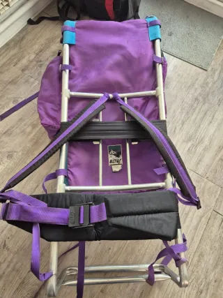 Vendo estructura de aluminio para mochila, ideal para transportar cargas pesadas. Era de una mochila ALTUS vintage. Con cinchas acolchadas para sujección a la espalda.