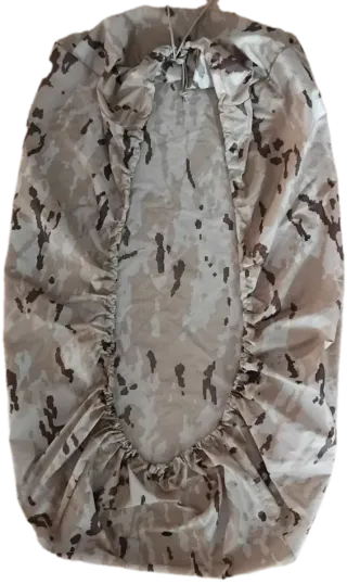 Funda para mochila con estampado de camuflaje. - Material Gore-Tex. - Diseño en tonos verdes y marrones. - Con acolchado inferior y painel naranja para aeronaves.