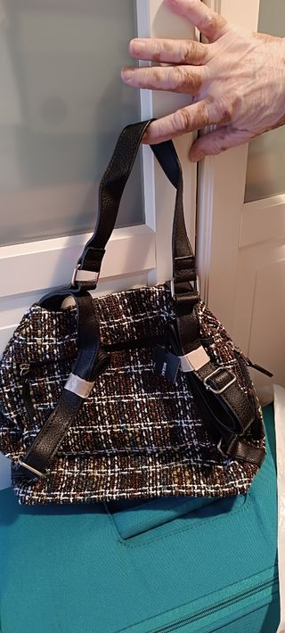 Mochila/bolso marrón. Totalmente nuevo, nunca se ha usado.Es un modelo antirrobo, ideal oara ir en transporte público, fiestas con mucha gente...) ya que su apertura es por la espalda. Tiene un asa adicional ,que se puede quitar, para llevarla colgada.Además, tiene varios compartimentos laterales, uno cerrado con cremallera y otro no, y un colgante en forma de cabeza de Mickey q también se puede poner o no. Ideal para regalo de Navidad, Reyes, cumpleaños...