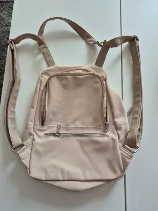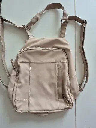 Preciosa mochila tipo bandolera, ideal para el día a día. Es de color beige con detalles marrones. - Diseño elegante y versátil. - Asa superior y correas ajustables para llevarla cómodamente. - Compartimento principal con cierre de cremallera. - Bolsillos adicionales con cremallera.