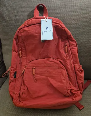 Mochila de la marca BSTO en color rojo, ideal para uso diario. Nueva con etiquetas. Unisex (cualquier edad). Capacidad aproximada de 10L Tiene doble cremallera en el compartimento principal, bolsillo antirrobo en la paste posterior, bolsillo con cremallera interior, así como varios bolsillos en la parte frontal y lateral. Perfecto para regalo navideño ;) ✨️