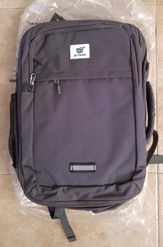 Mochila Kono de cabina 40x20x25 cm, perfecta para Ryanair como artículo personal. Con puerto USB externo, bolsillo antirrobo trasero, varios compartimentos y correa trasera para enganchar en maleta. Muy ligera, impermeable y práctica para viajes cortos, universidad o trabajo. Se adapta bajo el asiento del avión. Diseño sobrio y elegante, color negro. Producto totalmente nuevo.
