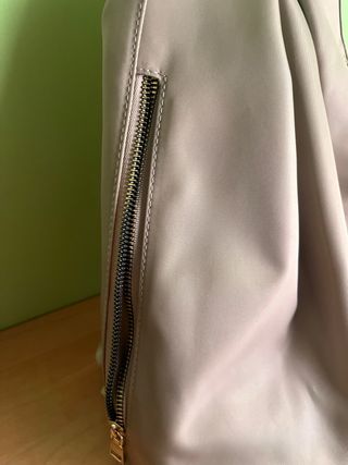 Mochila práctica y segura, ideal para el día a día. Con algún roce, pero aún puede hacer un buen servicio. - Diseño moderno. - Cierre de cremallera principal trasero. - 2 bolsillos frontales con cremallera. - 2 Bolsillos interiores con cremallera - Asa de mano superior. - Correas ajustables para llevar como mochila. - Detalle de tirador decorativo.