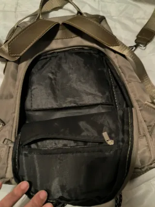 Mochila/bolso convertible de la marca Misako en color camel. Es un modelo antirrobo y se encuentra en perfecto estado, sin estrenar. PVP de 30 EUR. - Diseño versátil que se puede llevar como mochila o bolso. - Cierre principal seguro para proteger tus pertenencias. - Compartimento frontal con solapa. - Herrajes metálicos dorados. - Piel sintética de alta calidad.