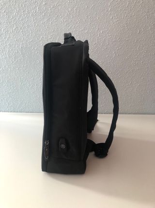 Mochila multidispositivo con accesorio para cargar el movil marca UBAYMAX. Tiene un bolsillo con cremallera posterior para seguridad antirrobo. En perfecto estado, lo he usado muy pocas veces. Lo vendo porque he cambiado de trabajo y ya no la uso, pero fue una compra magnifica.