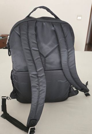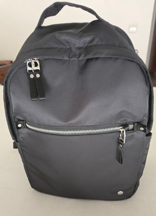 Mochila como nueva. Muy poco uso. Me gusta la marca Pacsafe por las protecciones antirrobo que incorpora. La vendo porque se me queda un poco pequeña para el uso que le quiero dar. Comprada en Wardow. Num. Artículo: 20463100 La descripción general es: Material: poliéster reciclado (sin PFC, resistente al corte, resistente al agua) tamaño portátil: Adecuado para portátiles de hasta 13 pulgadas Tamaño: aprox. 36 x 26 x 12 cm (ancho x altura x profundidad) Peso: 0,45 kg Capacidad: 10 L