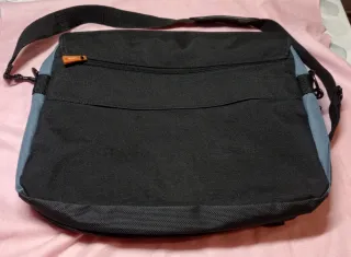 Bolso multiusos con un diseño moderno y práctico. Medida 40×35 - Combinación de colores negro y naranja. - Correa ajustable para mayor comodidad. - Compartimentos interiores para organización con cremalleras. - Anclajes de seguridad antirrobo.