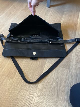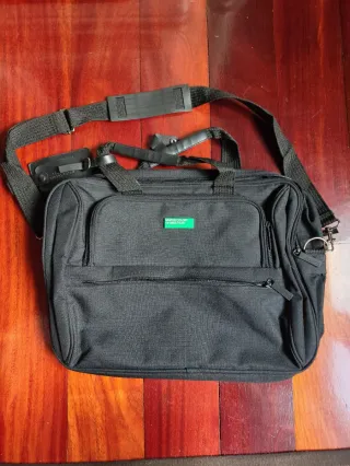 Bolso de mano para ordenador Benetton. - Compartimento principal acolchado. - Bolsillo frontal con cremallera. - Parte trasera para acoplar a maleta. - Asa de mano acolchada. - Correa de hombro desmontable. - Cremalleras en perfecto estado