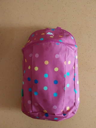 Mochila con un divertido estampado de lunares. Medidas 40cm x 25cm - Diseño alegre y colorido. - Cierre de cremallera. - Asa superior y tirantes ajustables.