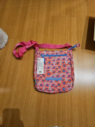 Bolso con un bonito estampado floral. - Diseño con flores en tonos rosa y azul. - Correa ajustable para llevar al hombro.