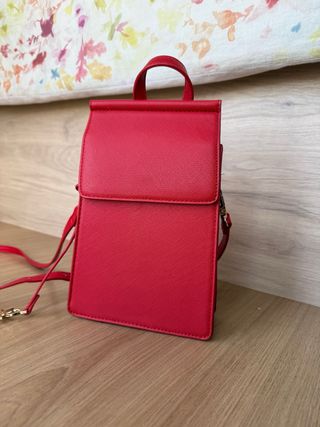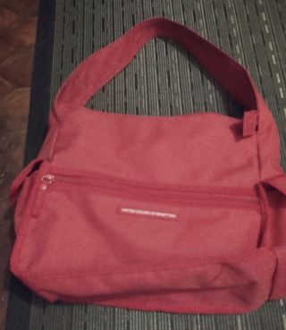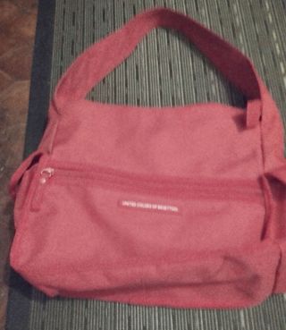 Bolso de mano de la marca United Colors of Benetton. - Color rojo. - Compartimento principal con cremallera. - Bolsillo frontal con cremallera. - Bolsillos laterales. - Correa ajustable para el hombro. Precio 15€