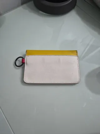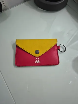 Tarjetero de la marca Benetton con un diseño bicolor. - Cierre de botón. - Detalle del logo de Benetton. - Incluye aro metálico para llavero.
