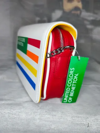 Bolso de la marca United Colors of Benetton con un diseño llamativo. - Combinación de colores blanco y multicolor. - Estilo moderno y juvenil.