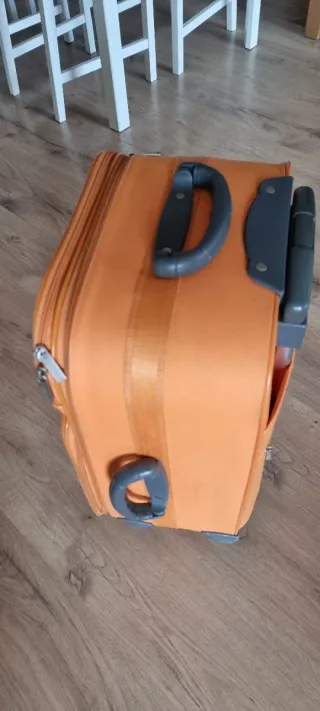 Maleta de viaje de la marca Benetton en color naranja. Cuenta con un diseño moderno y práctico. - Asa extensible. - Ruedas para facilitar el transporte. - Compartimento principal con cremallera. - Bolsillo frontal adicional.