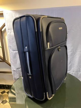 Maleta mediana de la marca Benetton en tonos azules y grises. Cuenta con un diseño práctico y elegante. - Cremalleras resistentes. - Asa extensible. - 2 Ruedas para facilitar el transporte. - Bordes, tiradores de las cremalleras y refuerzos de PVC gris para mayor resistencia. - Tamaño mediano - Exterior de la maleta con desgaste por uso. - Interior de la maleta en perfectas condiciones. Ancho: 42 cm Fondo: 25 cm Alto: 62 cm Si necesitas, información adicional, no dudes en contactar. Precio no negociable. Visita mi perfil donde encontrarás artículos curiosos y diferentes. Gracias